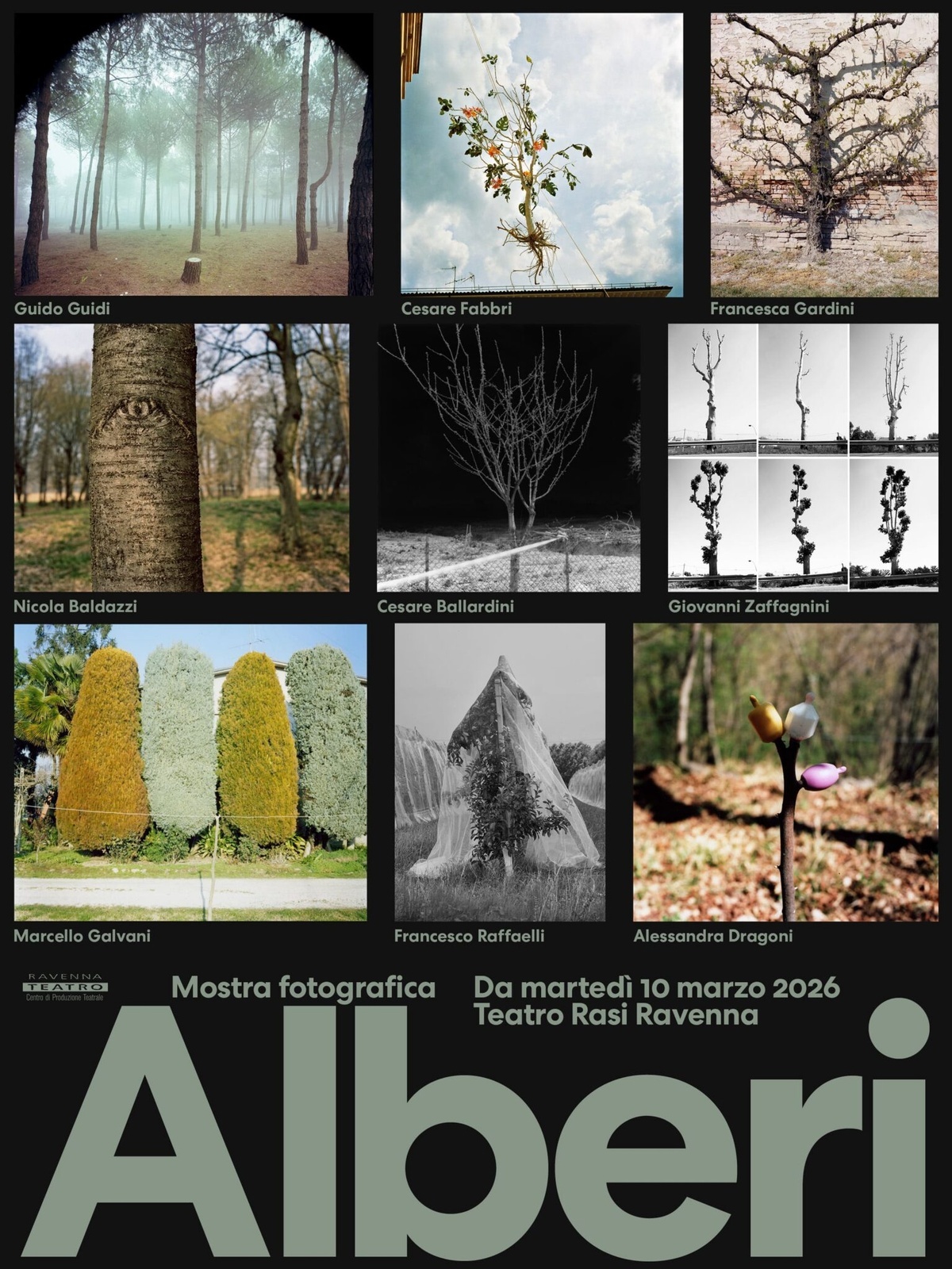 «Una costellazione di sguardi su questo simbolo universale. È un invito a rallentare e a guardare davvero, perché ogni fotografia è un incontro: un tronco che sembra una spina dorsale, una chioma che ricorda una mappa, un ramo che pare un gesto, una corteccia che affiora come un volto. In queste immagini gli alberi sono insieme paesaggio e personaggio, sfondo e presenza. Ci ricordano che la bellezza non è solo qualcosa da ammirare, ma una responsabilità: ci educa a uno sguardo diverso e quindi alla cura», racconta Alessandro Renda (Albe/ Ravenna Teatro), che si occupa dell’immagine dei materiali di Ravenna Teatro, insieme al grafico Luca Sarti...