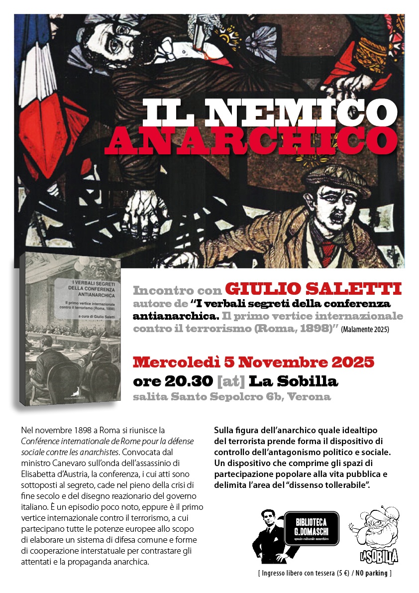 Incontro con Giulio Saletti, autore de “I verbali segreti della conferenza antianarchica. Il primo vertice internazionale contro il terrorismo (Roma, 1898)” (Malamente 2025)