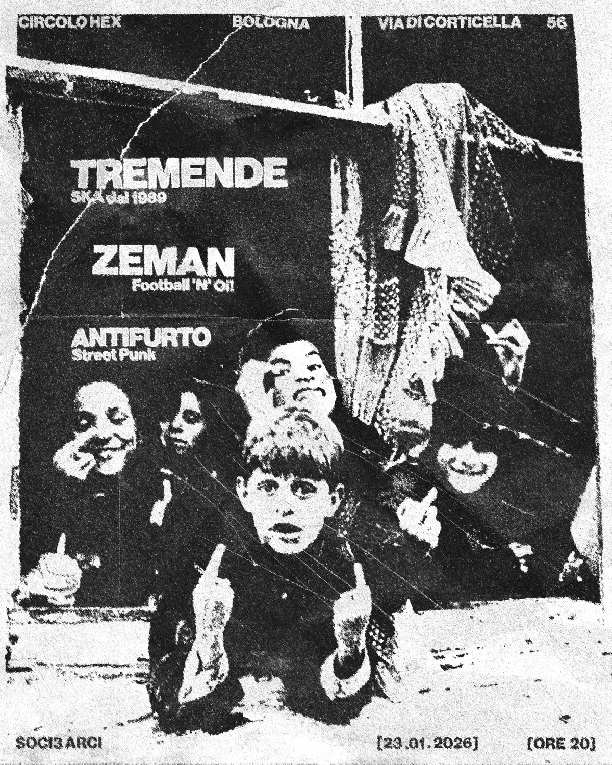 Gli Zeman sono una band Oi! di Bologna (e non solo!), attiva da piรน di dieci anni. Noti per il sound energico che mescola influenze hardcore e per i testi che riflettono una visione schietta e sfrontata della realtร , celebrano lo spirito DIY e la cultura punk/Oi!, con riferimenti al calcio e alla vita di strada che... "Ancor Non M'Abbandona!".